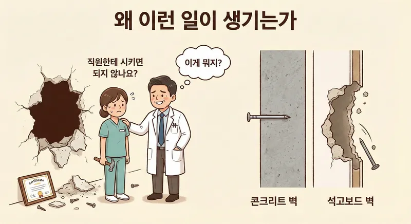 [진료실 생존스킬 #2] 석고 벽에 못, 누가 와서 박나요? 내가 사서 박지요