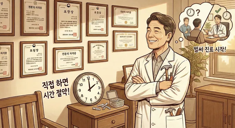 사람 부를 시간에 원장님이 직접 박으세요. 옆집 원장님은 벌써 박고 진료 보고 있습니다.